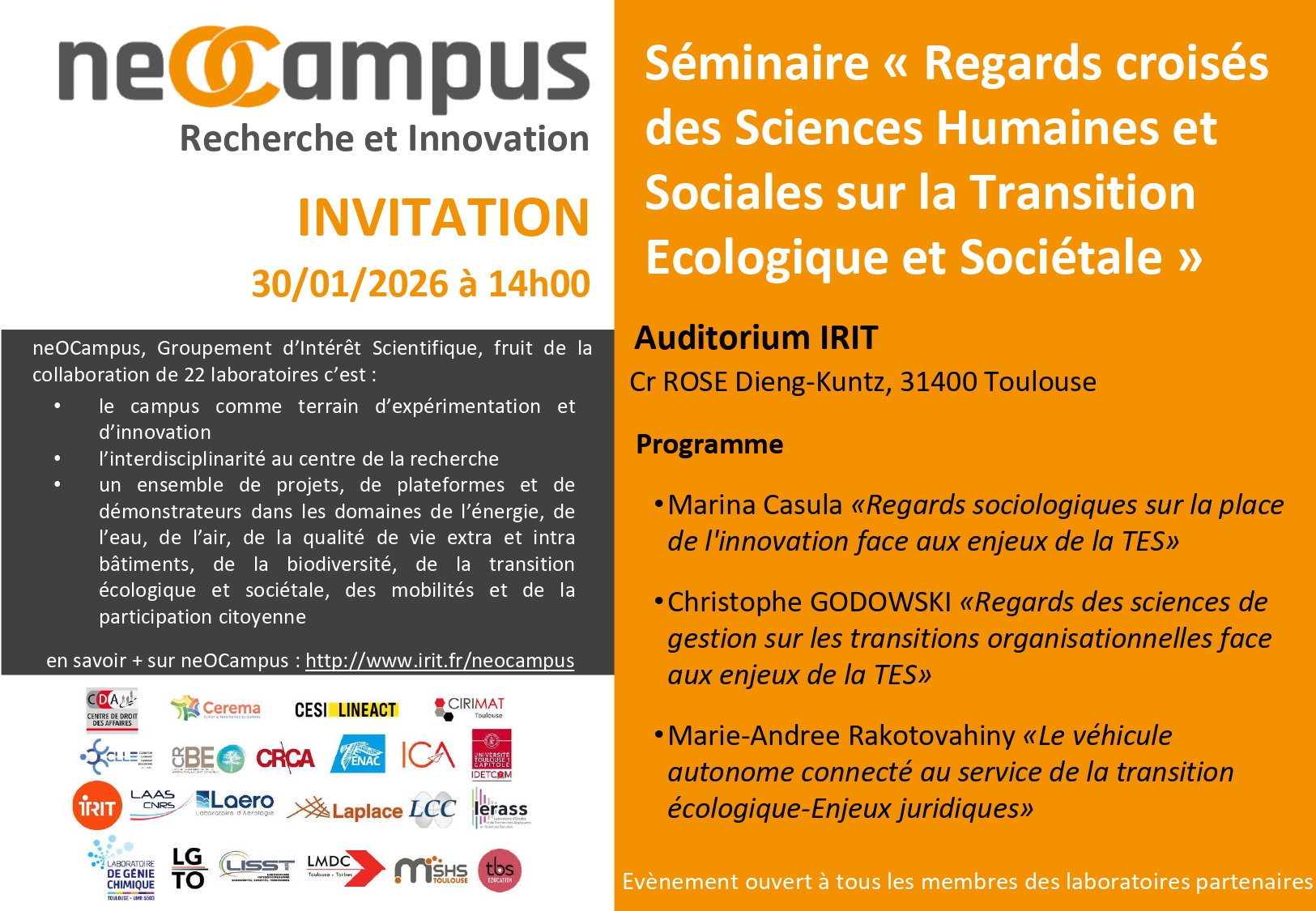 L’événement est ouvert à l’ensemble des membres des laboratoires partenaires.