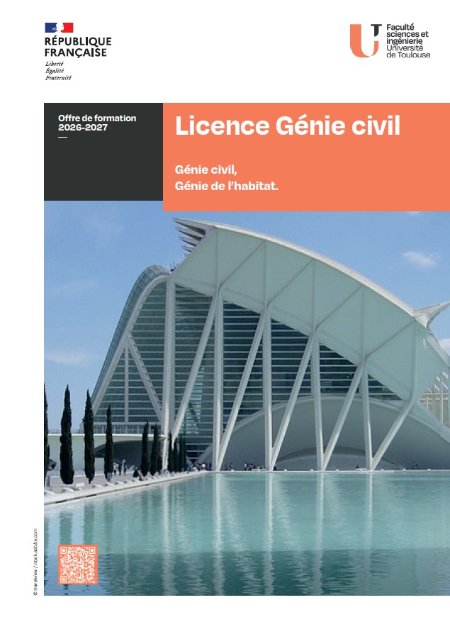 La licence mention Génie civil rentre dans le cadre de la licence flexible mise en place par l'Université Toulouse III Paul Sabatier à la rentrée 2022.