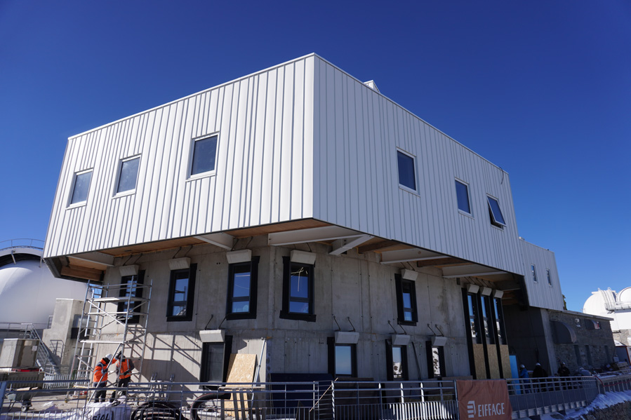 Le pic du Midi de Bigorre a accueilli, en parallèle des activités de recherche de l’Observatoire Midi-Pyrénées (OMP1) et des activités touristiques, d’importants travaux initiés en 2021. Ces chantiers concernaient l’extension de la structure d’accueil des scientifiques et la création d’un bâtiment pour les équipements scientifiques de ré-aluminure du miroir du télescope Bernard Lyot (TBL). Après l’achèvement du clos-couvert de Dauzère-Soler en 2022 qui a marqué une étape importante des travaux, ces derniers se sont poursuivis jusqu’en 2024.