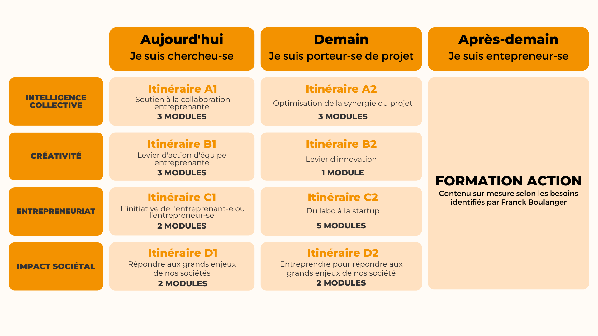 Découvrez le détail des modules de la formation Du Chercheur à l'Entrepreneur